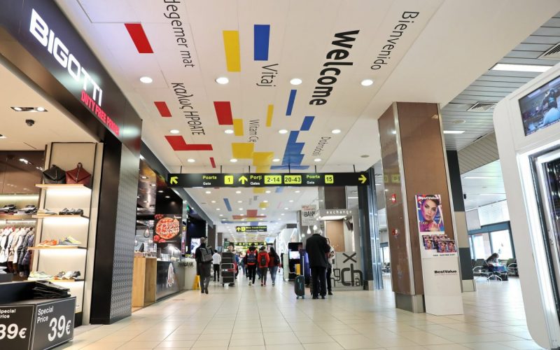 Mesajul „bun venit” tradus în mai multe limbi și afișat în zona „Plecări” de la Otopeni (foto)
