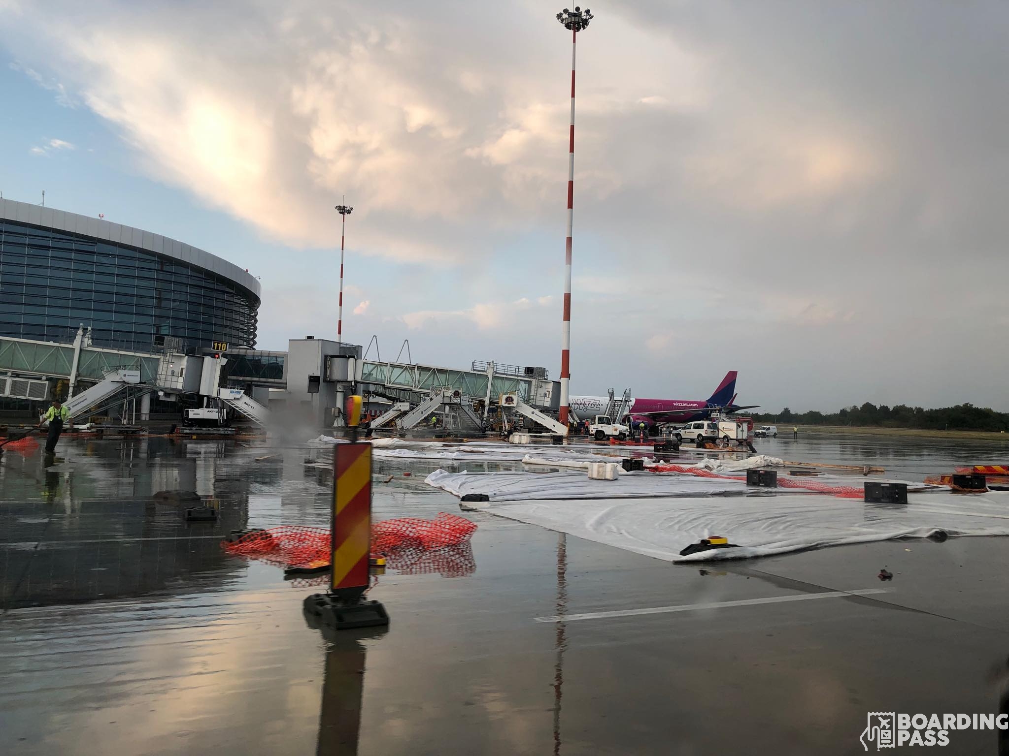 Potrivit informațiilor primite mai devreme, bucăți din acoperișul terminalului de la Otopeni au fost desprinse de furtună și au căzut în apropierea a două Airbusuri A320 Austrian Airlines și Air France.