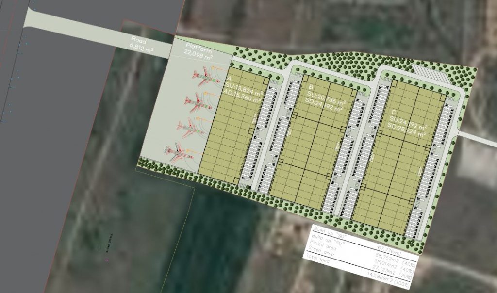 Terenul pus la dispoziția companiei prin acordarea dreptului de superficie are o suprafață de 143.880 mp.