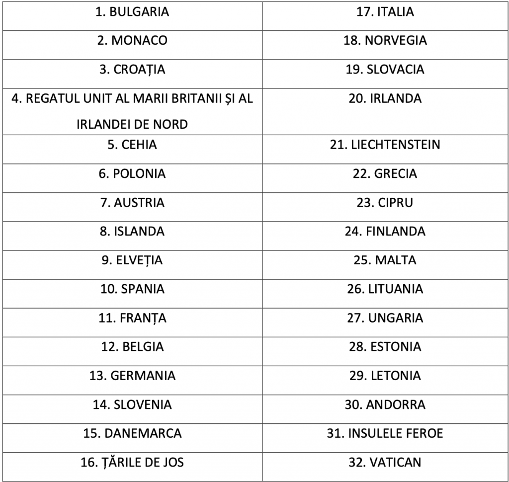 Potrivit hotărârii numărul 34 din 6 iulie a CNSU, companiile aeriene pot opera zboruri comerciale regulate din România către toate țările din lista de mai jos.