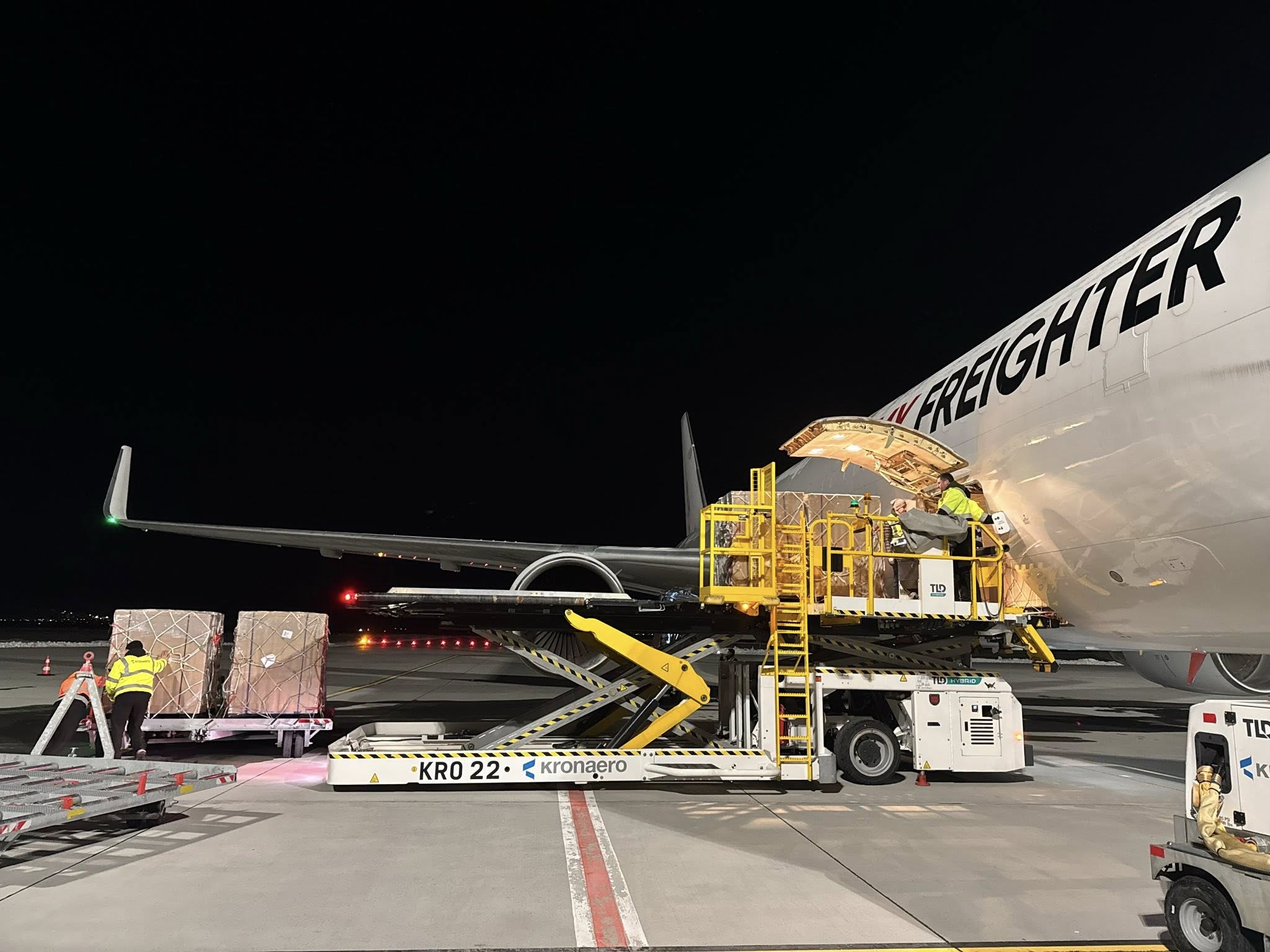 Cele 47 de tone de marfă transportate la bordul Boeingului 767-300 cargo au fost descărcate direct pe platforma aeroportului. În prezent, la Brașov nu există un terminal cargo dedicat sau infrastructură specializată pentru procesarea volumelor mari de marfă.