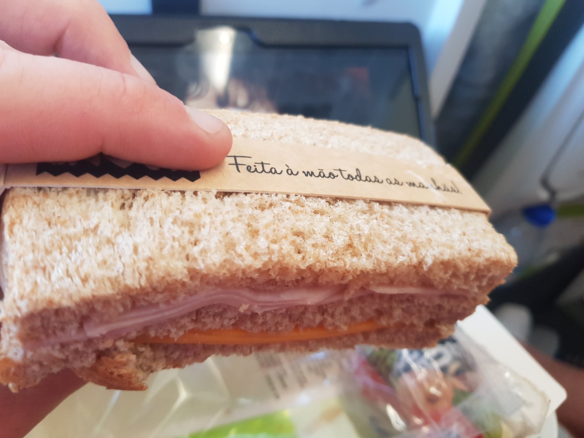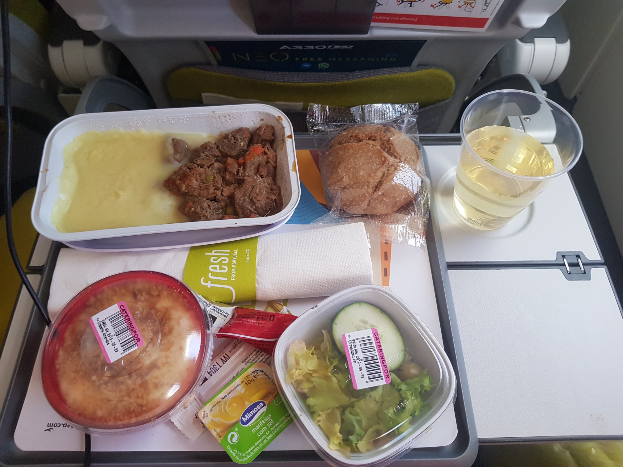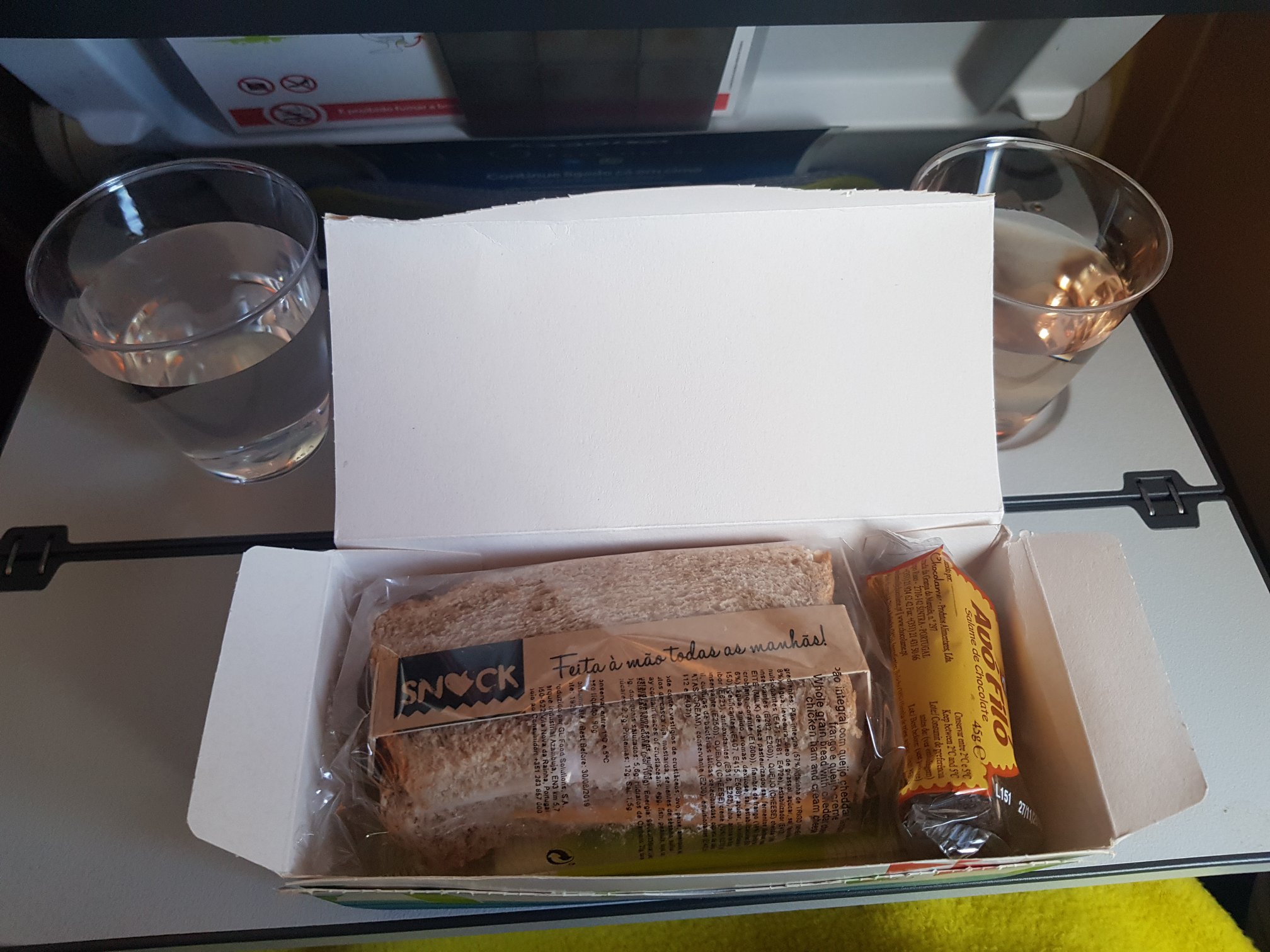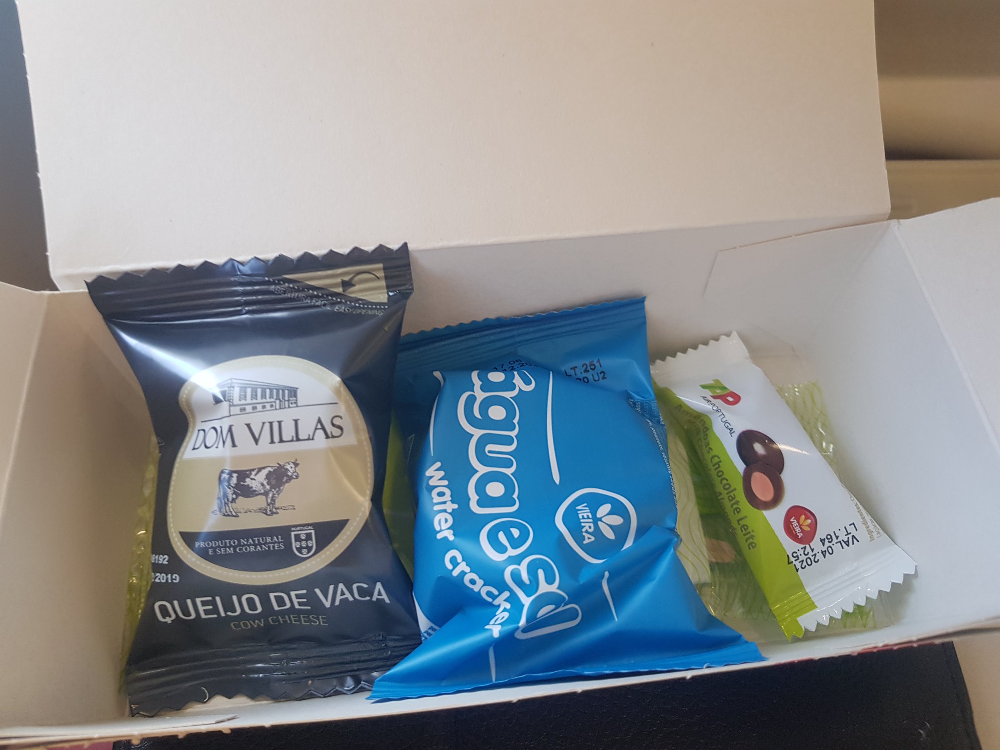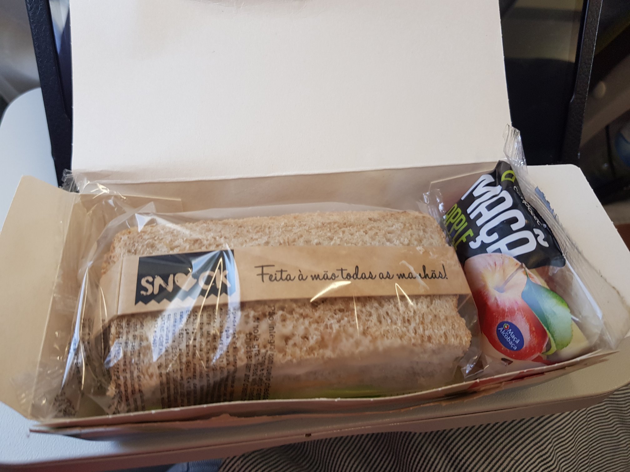 Pe zborul Budapesta – Lisabona am primit o clatită cu branză, şuncă şi ceva verdeaţă, iar pe zborul Lisabona – Budapesta o jumătate de sandviş. Ambele erau exact definiţia mâncării fără niciun gust. Cred că a fost cea mai seacă mâncare pe care am primit-o vreodată în avion. Nu există niciun criteriu la care mâncarea oferită de TAP Air Portugal pe aceste zboruri să poată rivaliza măcar cu sandvişurile oferite de Tarom pe zborurile interne.