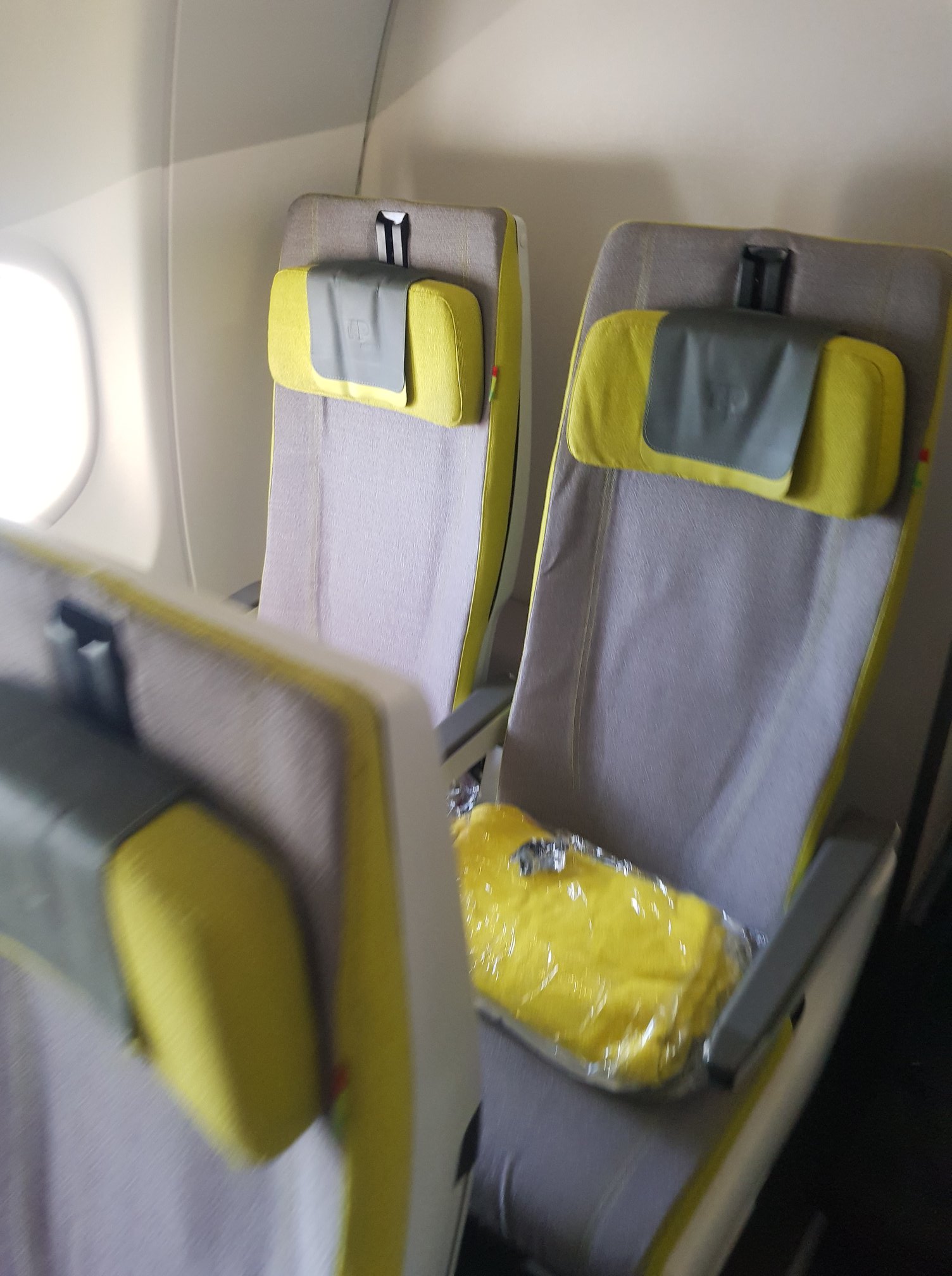 Spre deosebire de avioanele de mediu curier, în cazul A330neo, compania portugheză nu a mai optat pentru o distribuţie densă a scaunelor. Locul oferit a fost foarte confortabil pentru cele 8-9 ore de zbor. E adevărat, părerea poate fi uşor subiectivă pentru că pe ambele zboruri am stat singur pe 2 locuri, ceea ce a sporit confortul. În clasa economy şi în economy extra, scaunele sunt dispuse câte 2 pe laterale şi 4 pe centru. Deci pe un rând de 8 scaune, 2 dintre scaune sunt la geam şi 4 au ieşire directă la culoar, rămânând doar 2 locuri mai nedorite.