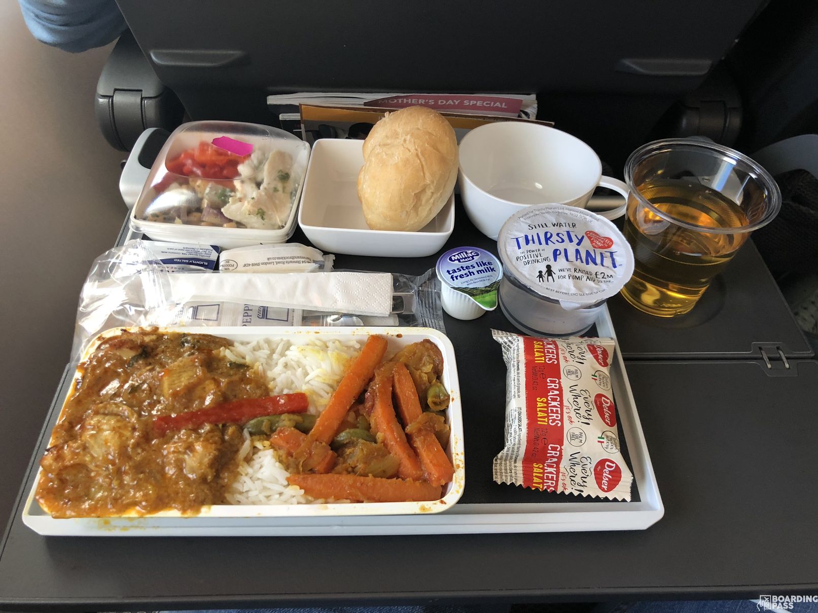 Înainte de a servi masa, însoțitorii de bord au distribuit meniuri și un prosop cald, ambele lucruri fiind rar întâlnite pe zborurile lung-curier în clasa economy.