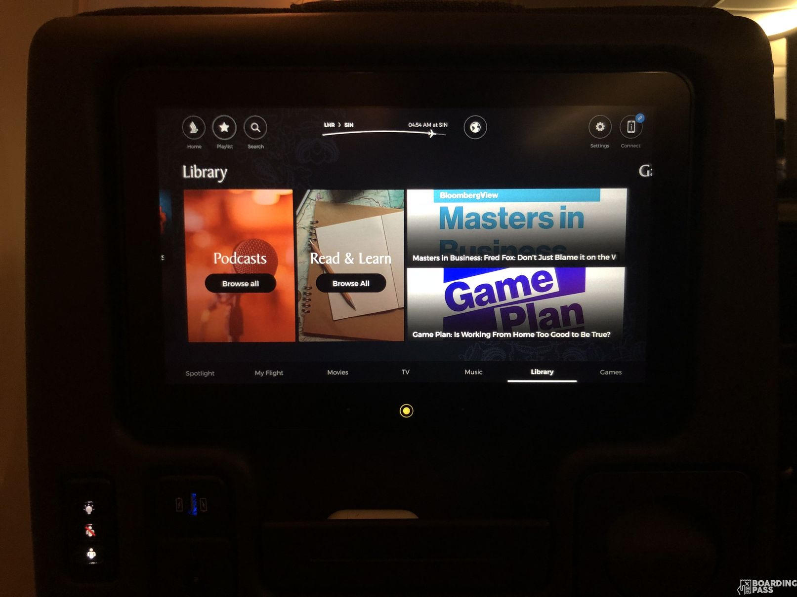 În ceea ce privește conținutul, Singapore Airlines a încărcat în acesta sute de filme, seriale TV, muzică, podcasturi și videoclipuri. În plus mai regăsiți și bine-cunoscuta hartă interactivă, reviste, jocuri și câteva canale TV live.