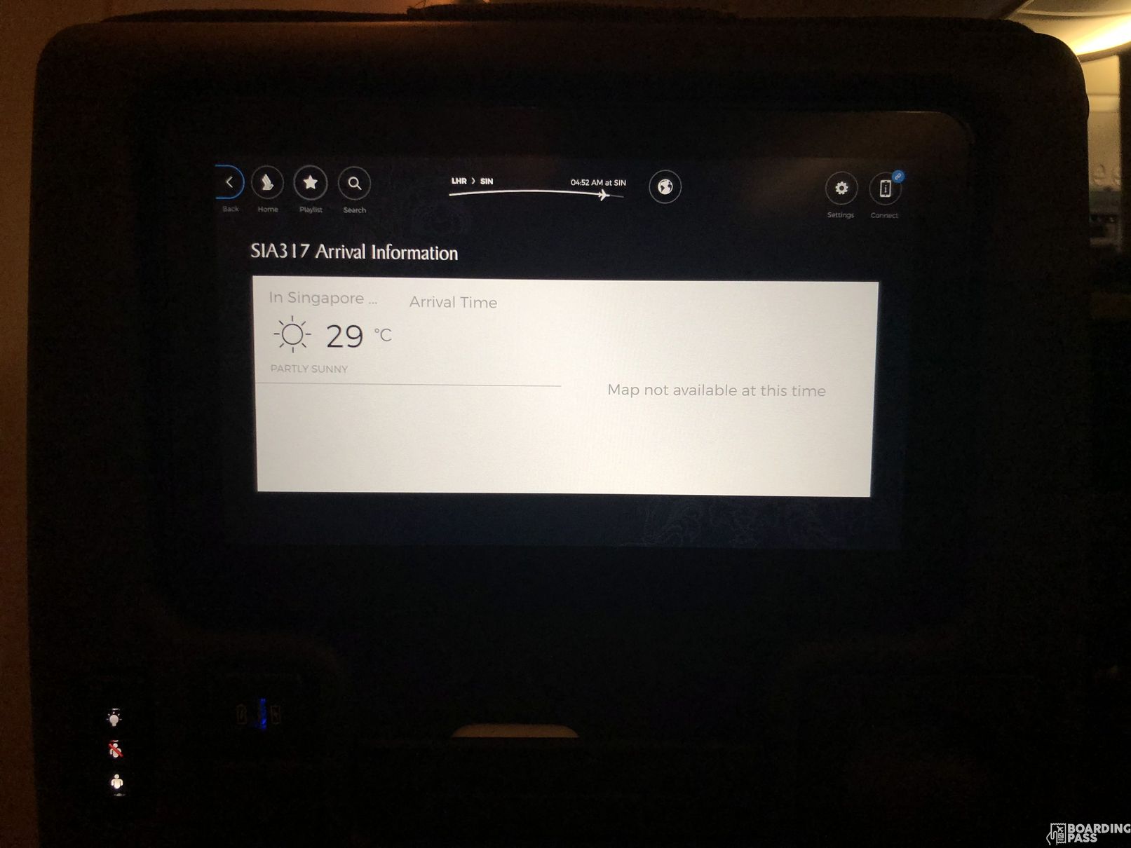 Zborul are o durată de peste 12 ore iar pe durata acestuia Singapore Airlines oferă două mese calde, una la scurt timp după decolare iar cealaltă înainte de aterizare.