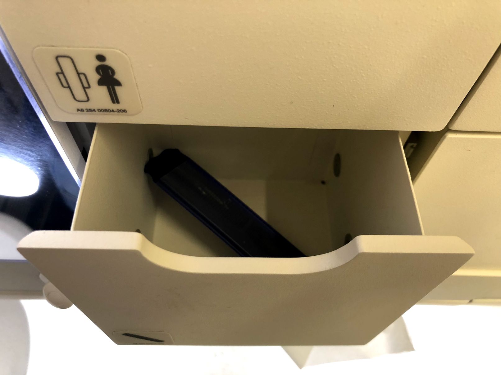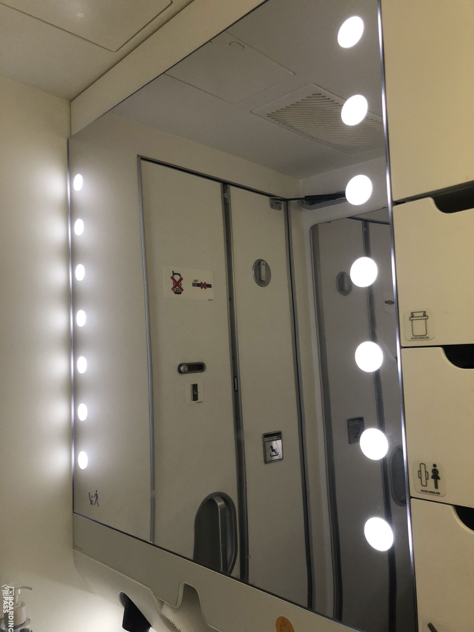 În toalete erau disponibile loțiuni, periuțe și pastă de dinți, absorbante și piaptăne. În plus, toaletele au fost foarte curate și ordonate pe întreaga durată a zborului.
