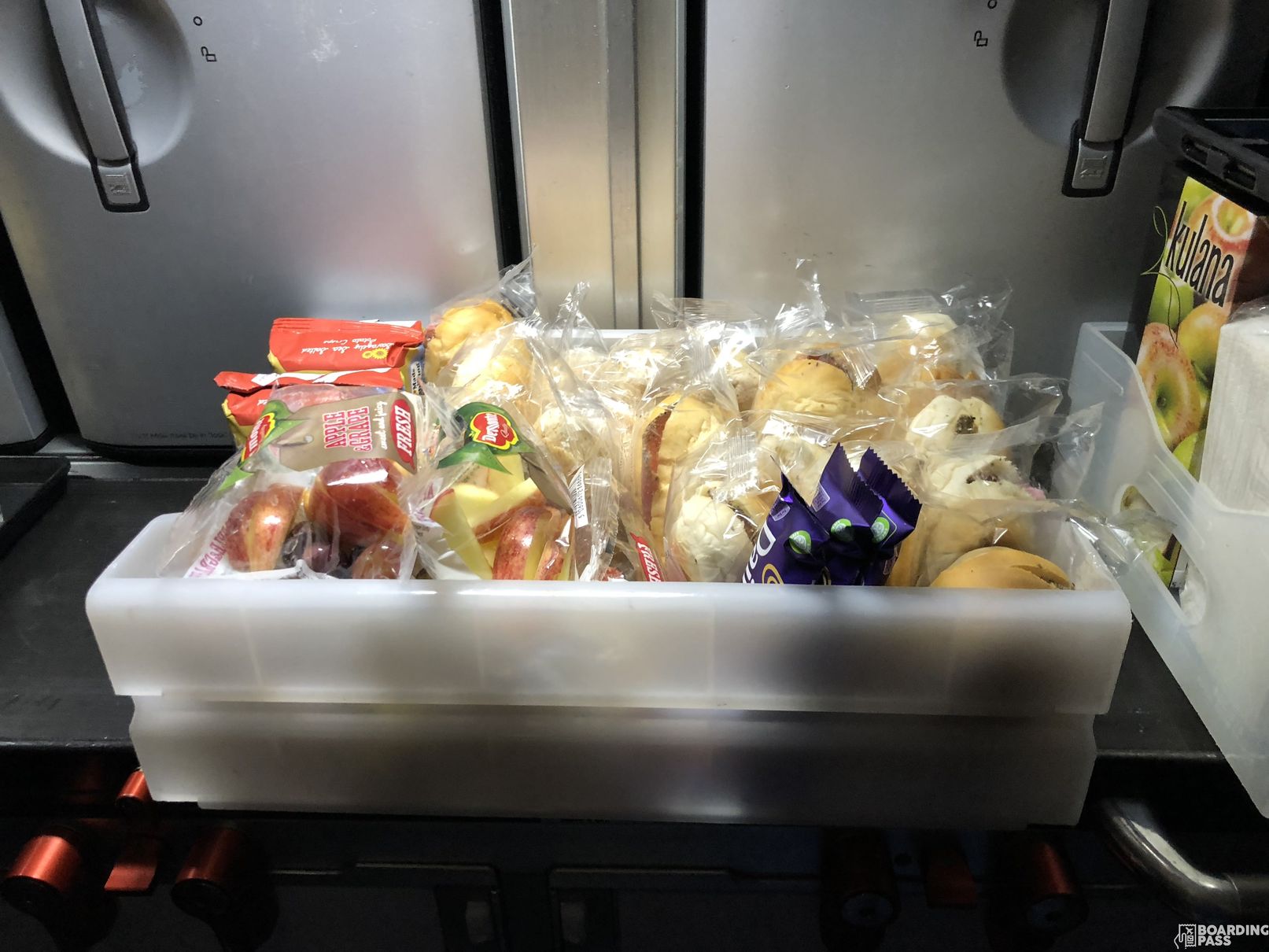 Calitatea și cantitatea acestor mese calde este foarte bună, însă între aceste mese însoțitorii de bord mai servesc fructe, înghețată, sandvișuri, snacksuri și băuturi destul de des.