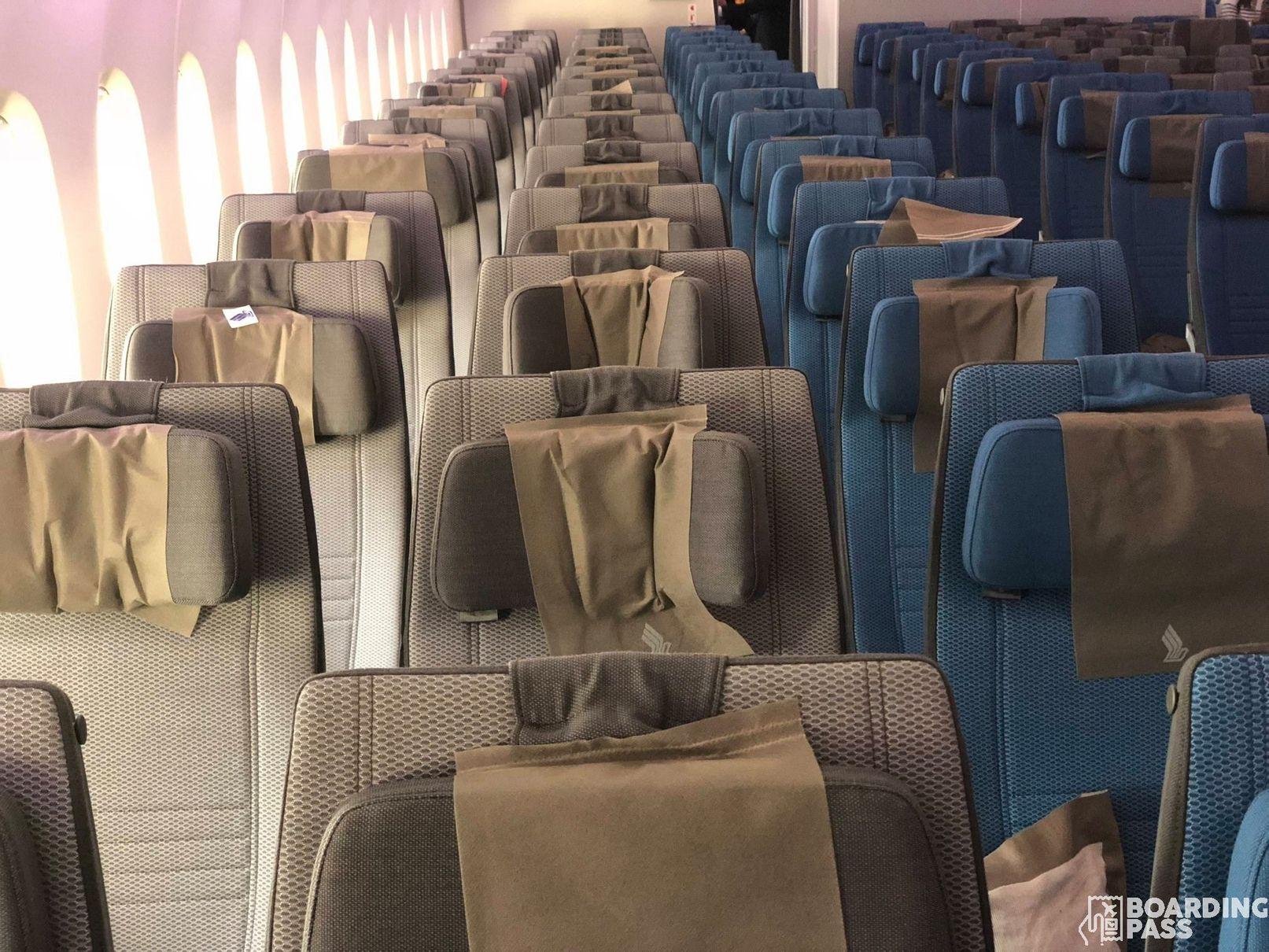 În clasa economy Airbusurile A380 din flota Singapore Airlines scaunele sunt aranjate în configurație 3-4-3, configurație adoptată de, probabil, toți operatorii de A380.