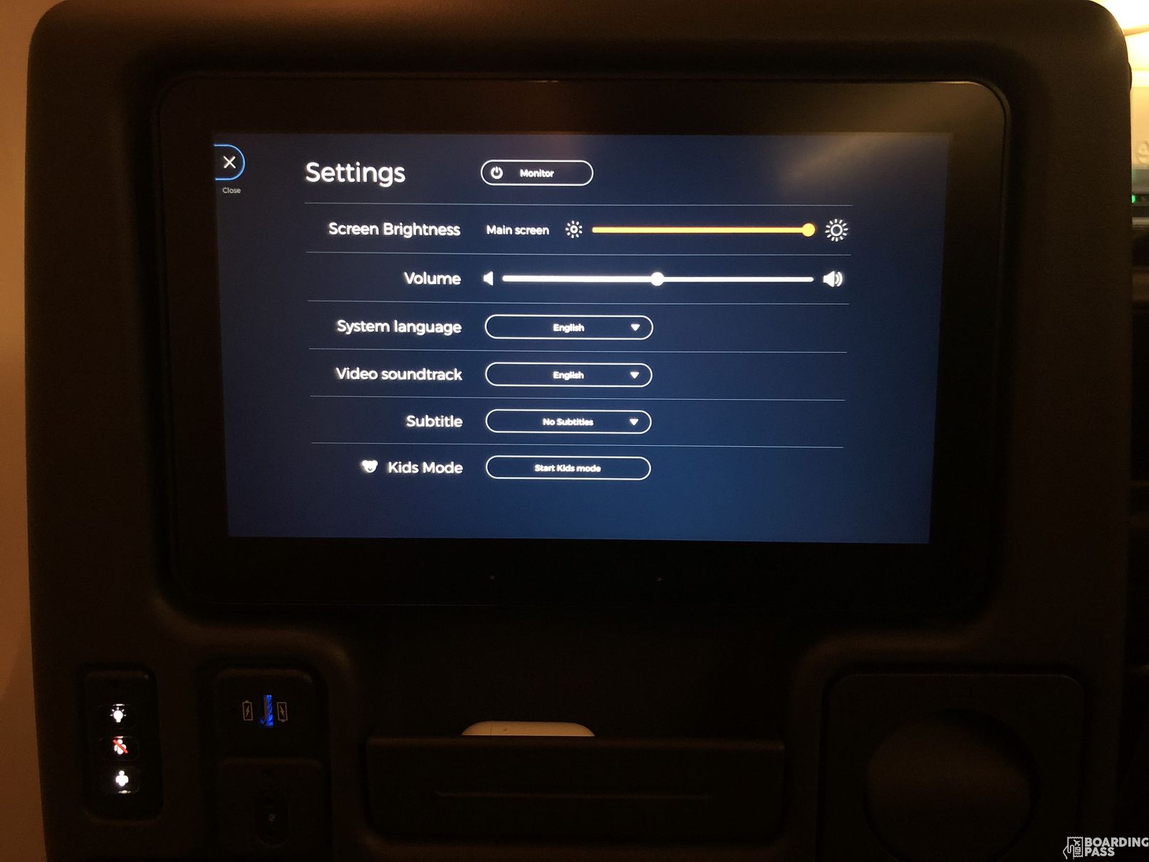 Lângă acesta regăsiți porturile USB și audio, butoanele pentru pornirea becurilor situate deasupra scaunului dar și pentru a chema un însoțitor de zbor, un suport de pahar și spațiu mic de depozitare.