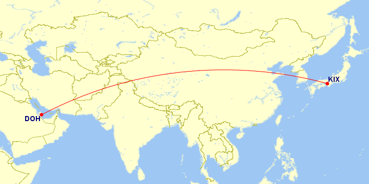 QR802: Doha (DOH) 02:10 – 17:50 Osaka (KIX);