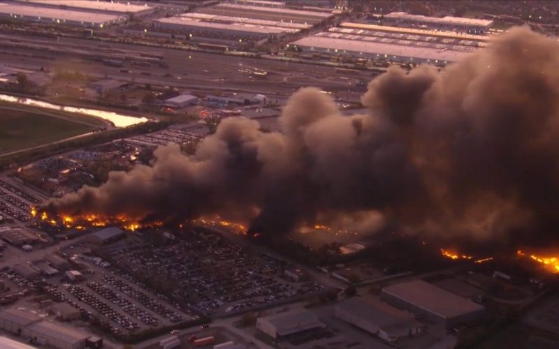 Locul impactului este într-o zonă industrială din apropierea aeroportului, iar incendiul s-a extins rapid și la clădiri și câteva zeci sau sute de vehicule aflate în parcări situate în zona accidentului.